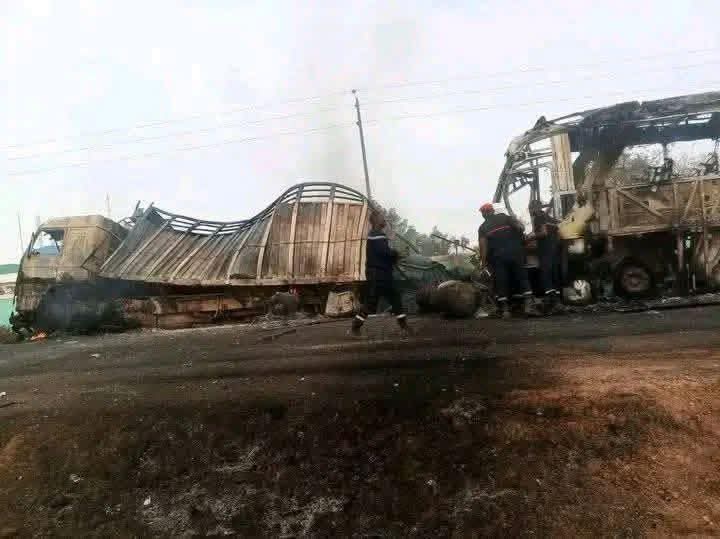Selon les premiers recoupements, un camion chargé de carburant était stationné à proximité de la douane lorsqu’un bus de la compagnie Baobab, venant de la ville, l’aurait percuté de plein fouet. Si les causes précises de la collision demeurent pour l’heure indéterminées, l’impact a été dévastateur : le chargement hautement inflammable du camion a pris feu instantanément.